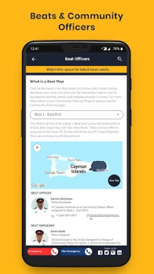 The app also places the names and mobile numbers of our Community Beat Officers at the fingertips of the public through our “Beat Officers” button. An interactive beat map describes the beats around the islands, alongside the photos and contact information the officers assigned to them. A cornerstone of our community policing ethic is to make ourselves accessible and responsive to the community members and their concerns. This mobile application only enhances this accessibility several times over, and fosters the kind of real connection between officers and community members that can solve crime.