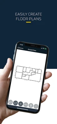 • Record rooms with the camera • Capture windows and doors • Create 2D floor plans • Export floor plans as DXF/PDF