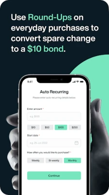 Use “Round-Ups” on everyday purchases to convert spare change to a $10 bond.